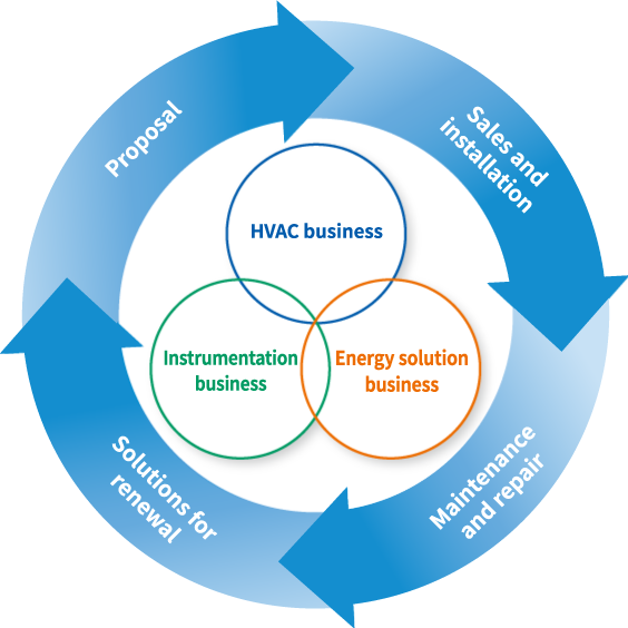 HVAC business, Instrumentation business, and energy solution business as its pillars, the Group as a