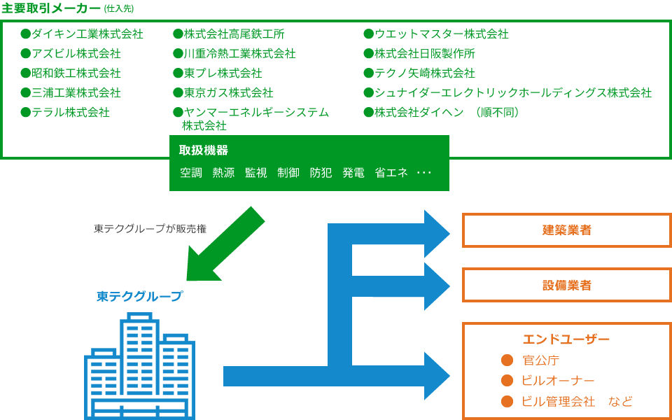 長年積み重ねた業界トップメーカーの販売代理店としての信頼と実績があり、建設業界において、取引先との強固な基盤を形成しています。